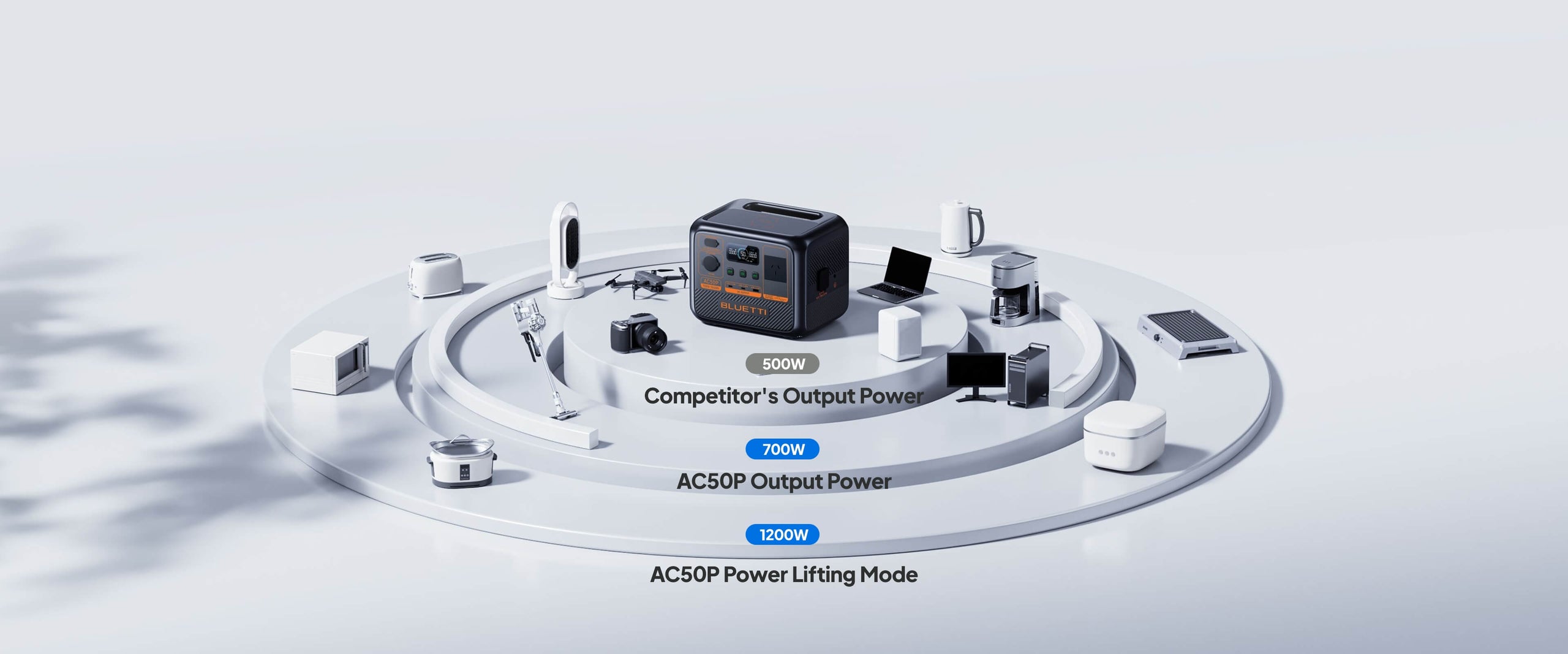 Flexible to charge via solar panels or battery packs, you can enjoy continuous power without interruption. Lightweight and portable, the AC50P is your go-to power source during outdoor adventures or even emergencies.